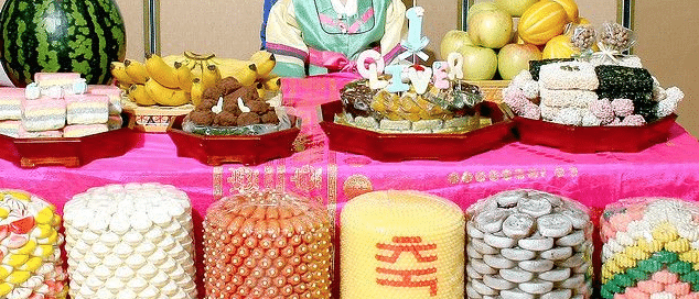 - Fruit: Traditionally very expensive in Korea, plates of fruit are piled high on the table to represent prosperity.